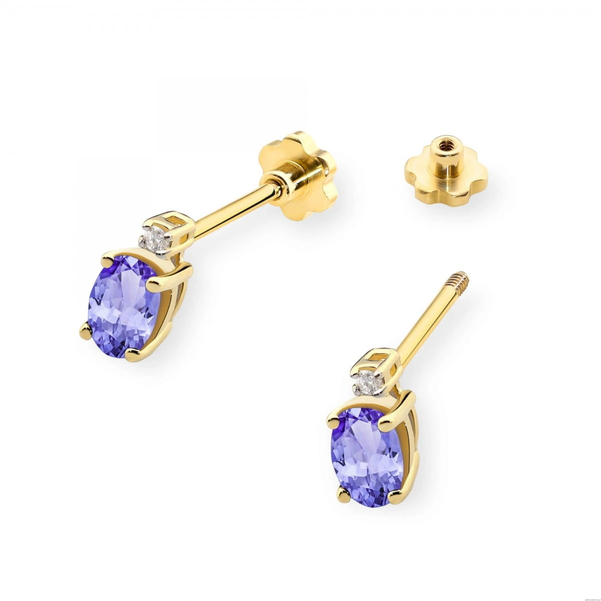 Kolczyki K0001 Tanzanit 2 x 0,40ct żółte złoto sztyft zakręcany