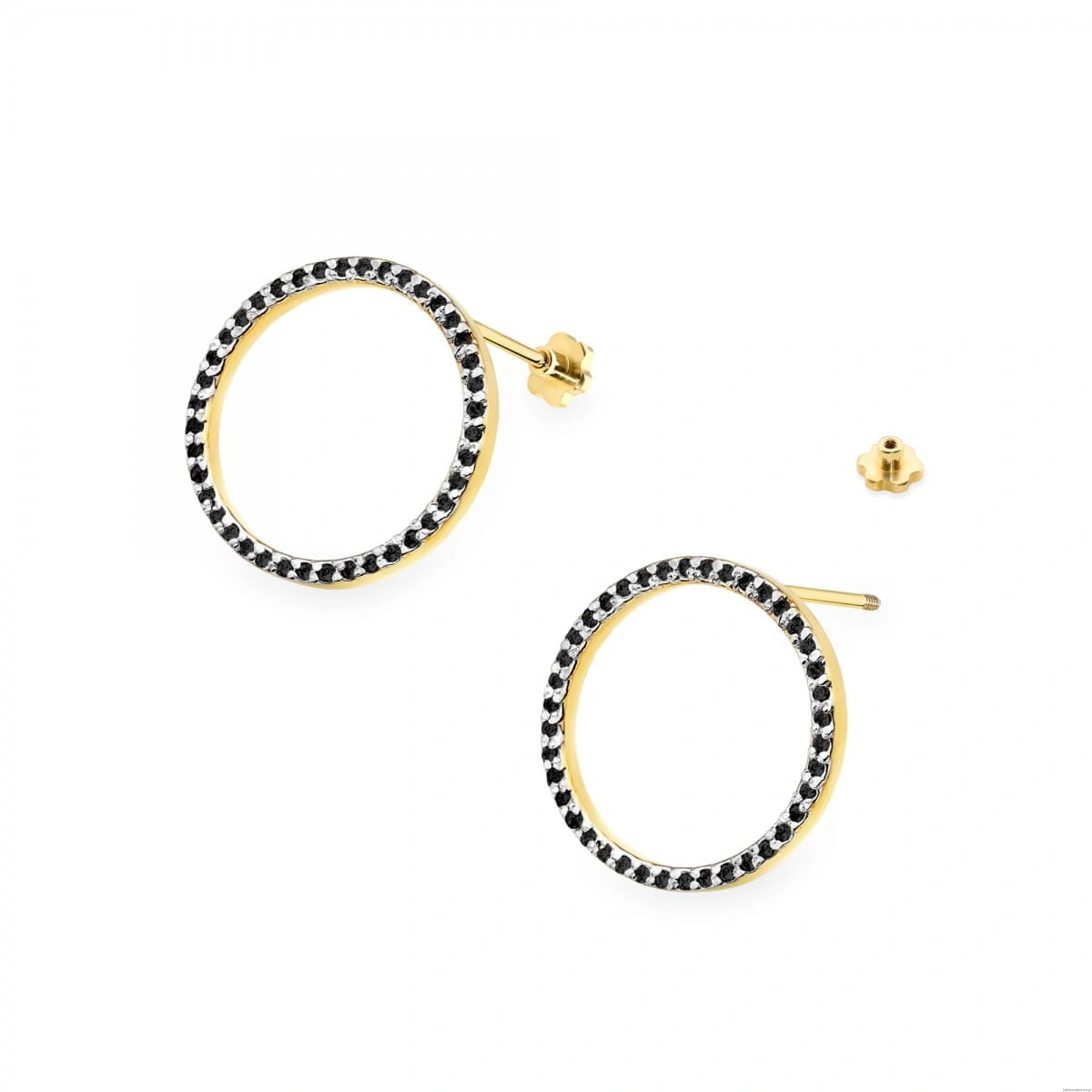 Kolczyki K0442 z czarnymi Diamentami żółte złoto sztyft zakręcany