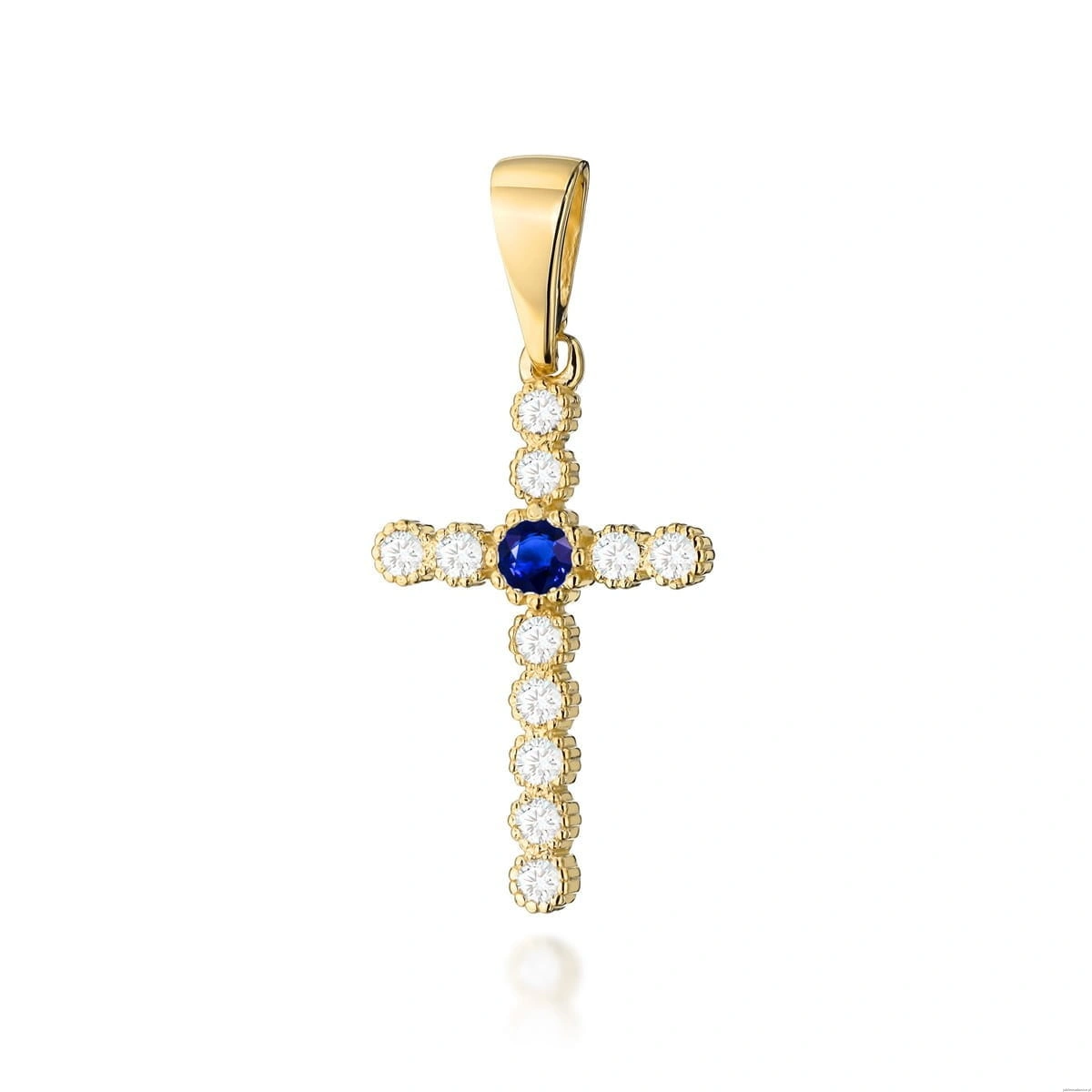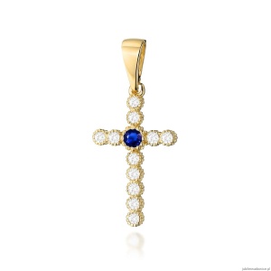 Krzyż D0008 Szafir 0,15ct żółte złoto