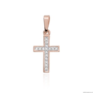 Krzyżyk D0042 z diamentami różowe złoto