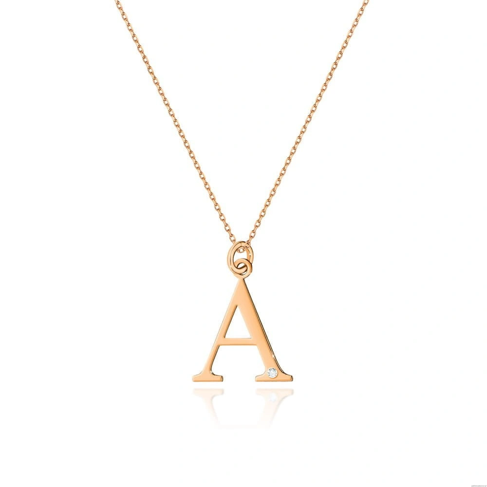 Naszyjnik N0069 z diamentami - Litera A - różowe złoto