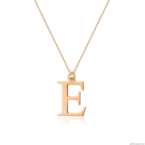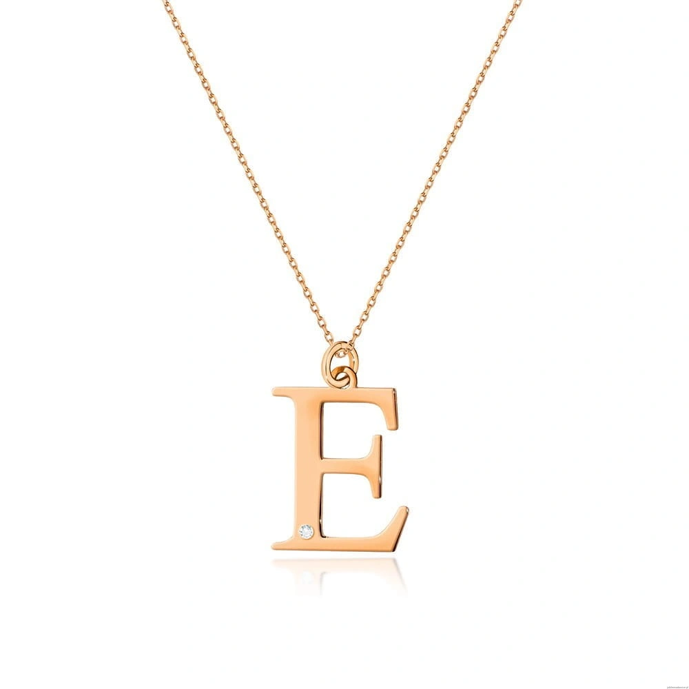 Naszyjnik N0069 z diamentami - litera E - różowe złoto