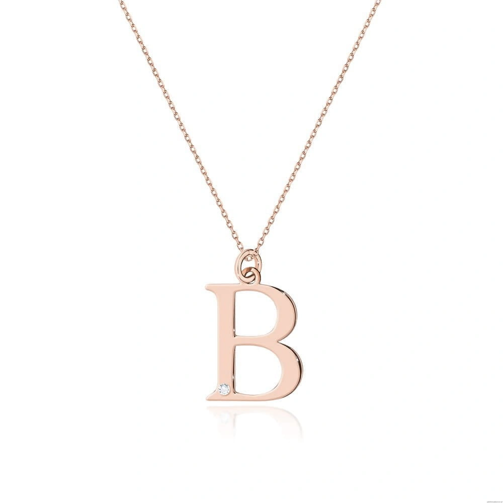 Naszyjnik N0069 z diamentami - Litera B - różowe złoto