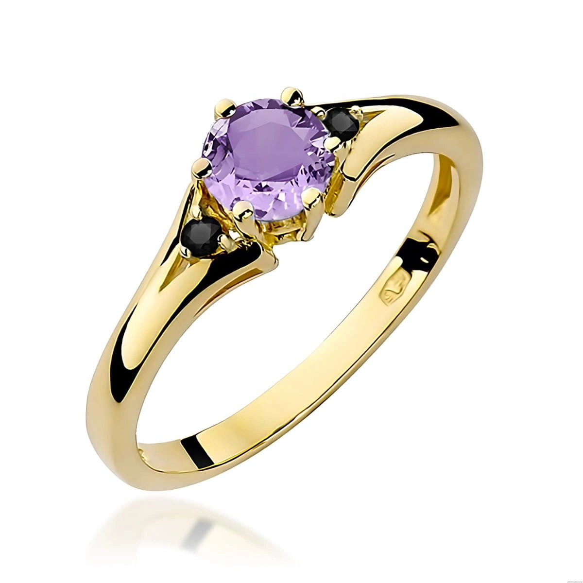 Pierścionek W0076 Ametyst 0,50ct żółte złoto z czarnymi diamentami