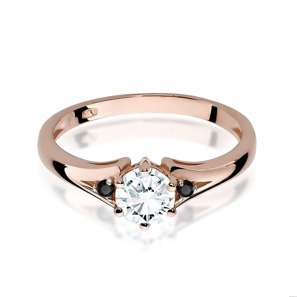 Pierścionek W0076 Biały Szafir 0,60ct różowe złoto z czarnymi diamentami