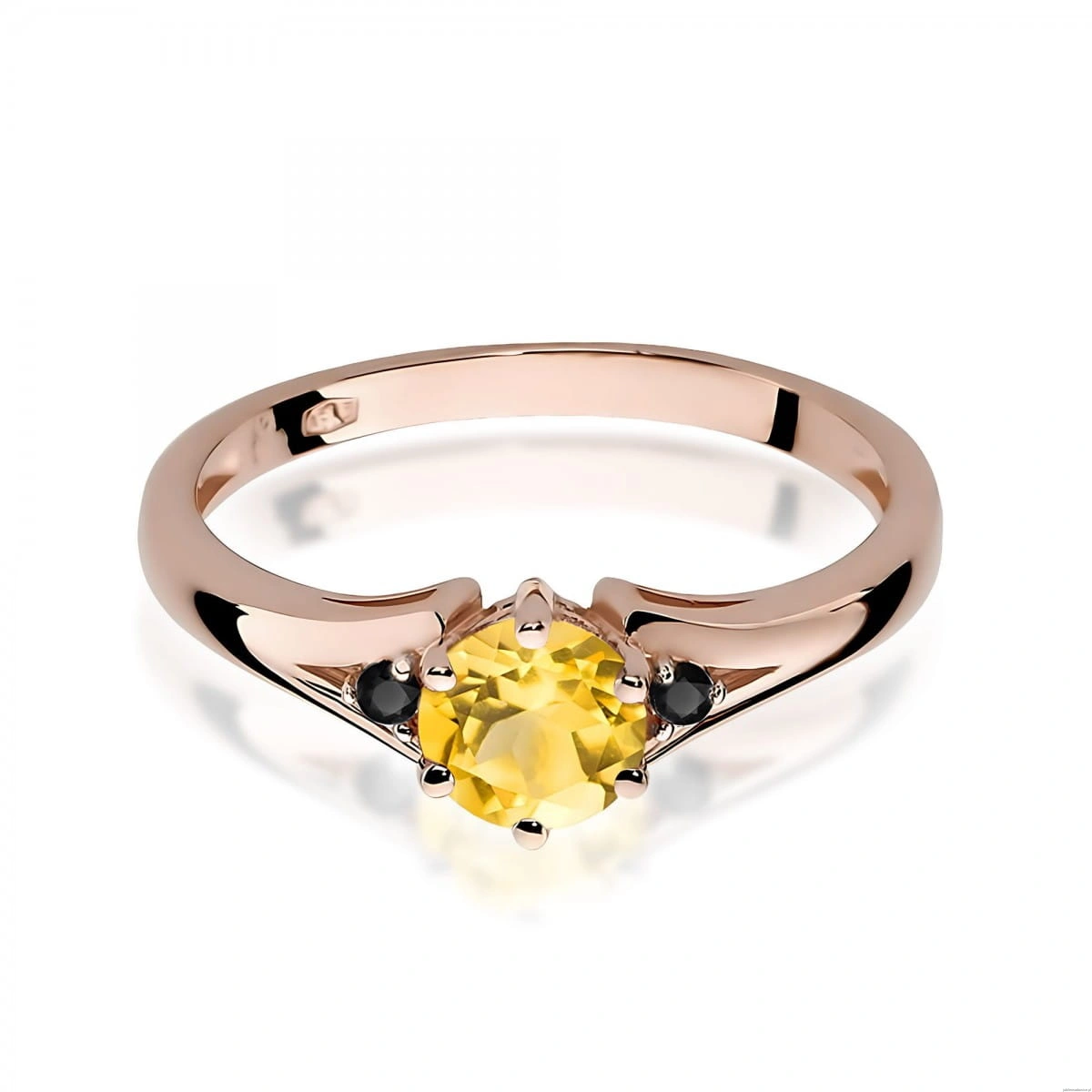 Pierścionek W0076 Cytryn 0,50ct różowe złoto z czarnymi diamentami