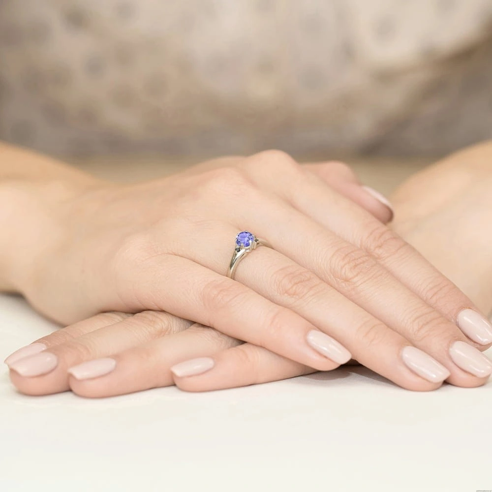 Pierścionek W0076 Tanzanit 0,50ct białe złoto z czarnymi diamentami