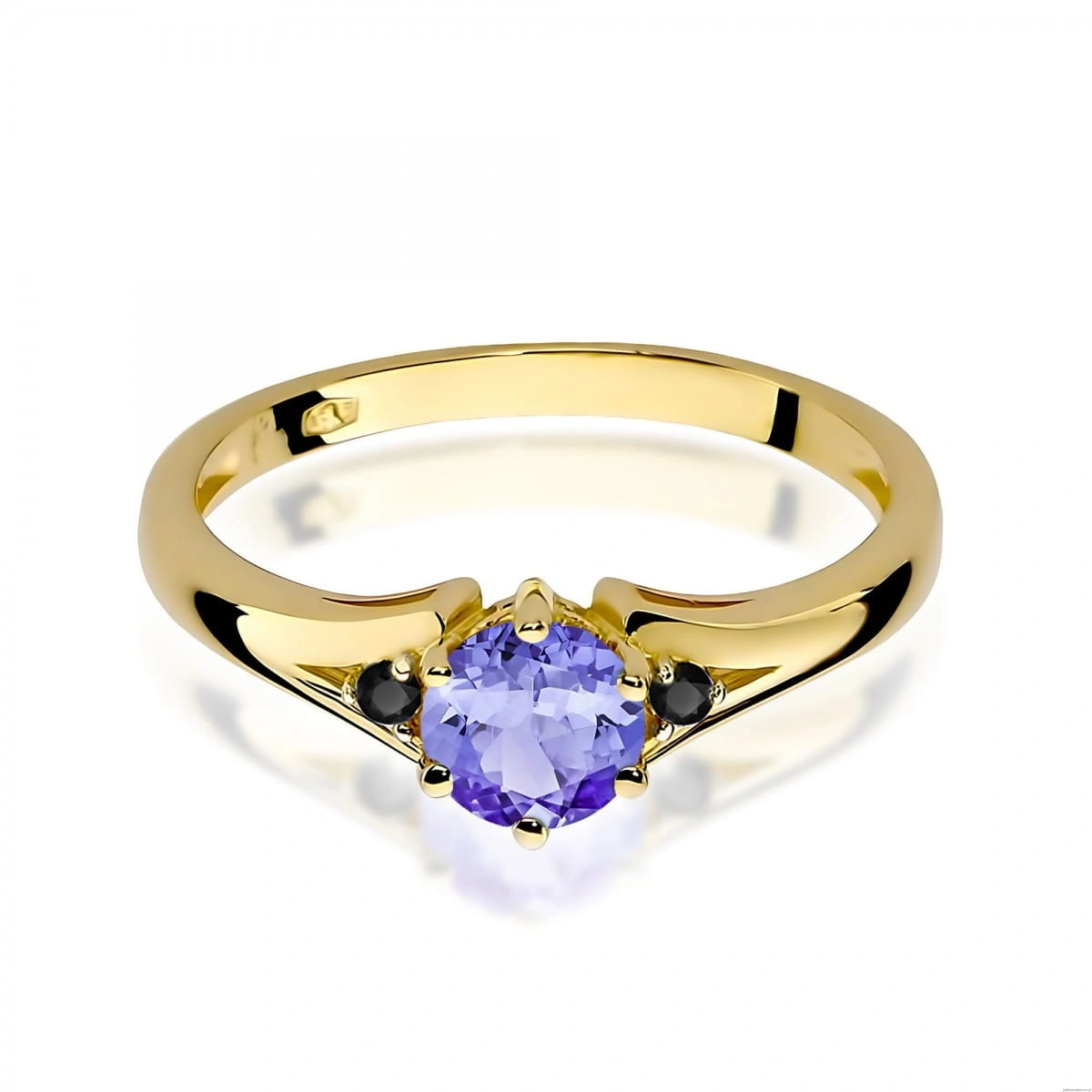 Pierścionek W0076 Tanzanit 0,50ct żółte złoto z czarnymi diamentami