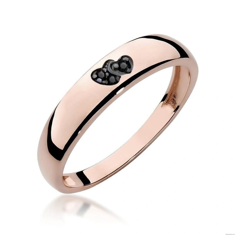 Pierścionek W0189 z czarnymi Diamentami różowe złoto