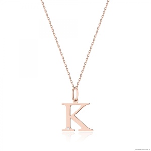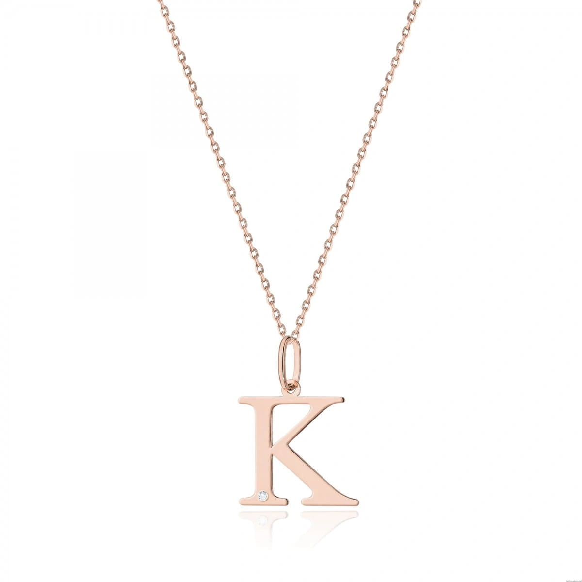 Naszyjnik N0069 z diamentami - litera K - różowe złoto