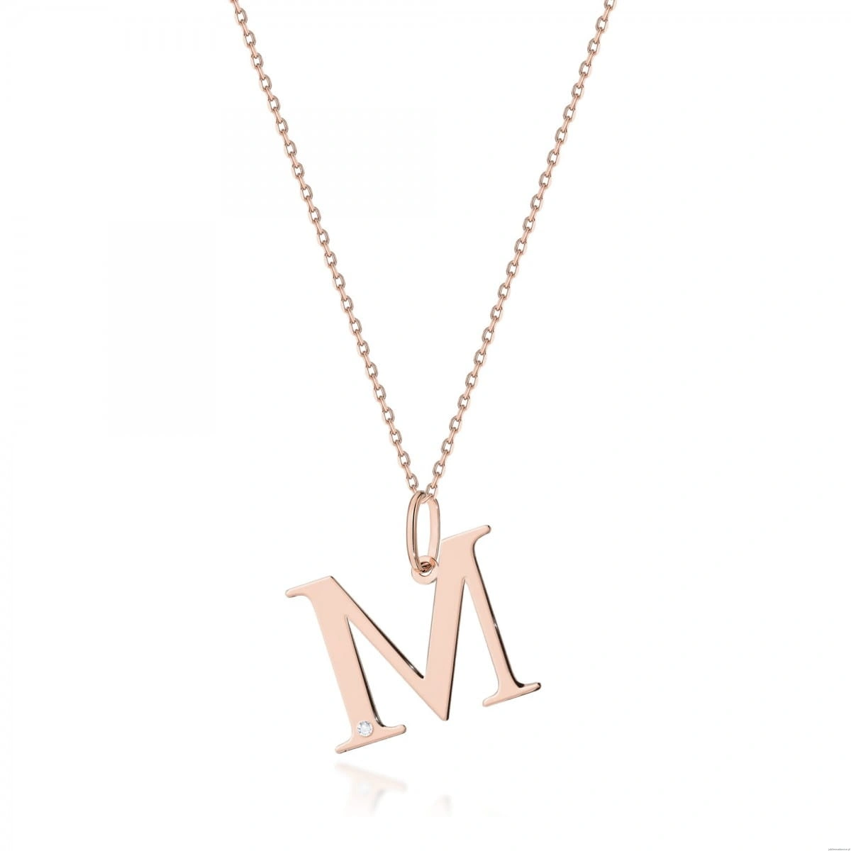 Naszyjnik N0069 z diamentami - litera M - różowe złoto