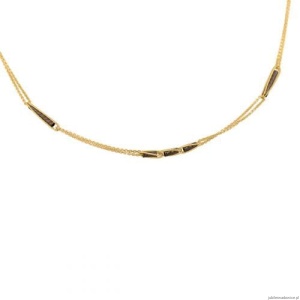 Bransoletka z podwójnych ankrowych łąńcuszków ozdobionych diamentowanymi drucikami z ukrytymi wewnątrz czarnymi, rodowanymi diamentowanymi kulkami. Możliwość regulacji do 18,5 cm.
