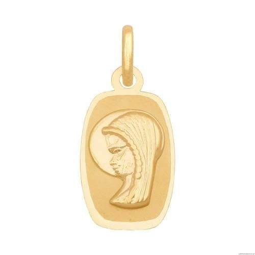 Współczesny medalik z wizerunkiem Matki Boskiej.Z tyłu pełny.