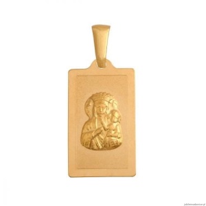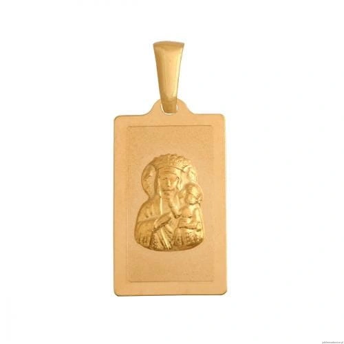 Prostokątny,matowany medalik z wizerunkiem Matki Boskiej Częstochowskiej.Tył pełny.