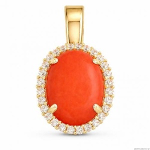 wisiorek z kamieniem imitującym koral (ciemniejsza wersja niż na zdjęciu)z cyrkoniami