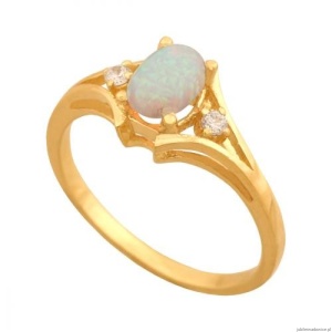 Pierścionek z owalnym opalem i dwoma cyrkoniami.