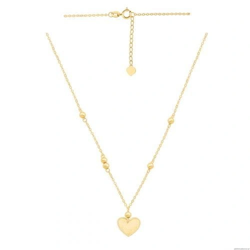 Naszyjnik z kuleczkami i grawerowanym serduszkiem. Możliwość regulacji długości do 42cm.