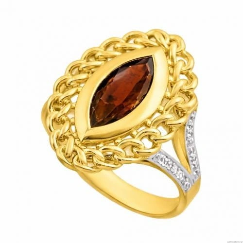 Pierścionek w stylu retro z kamieniem w kolorze granatu i cyrkoniami.