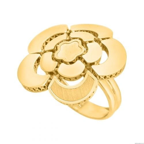 Pierścionek kwiat z ruchomymi płatkami w połączeniu błyszczącego i matowego złota.