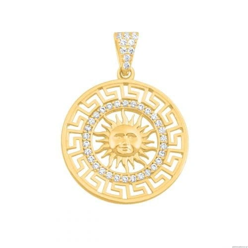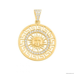 Medalion ze słońcem, zdobiony grecką drogą i cyrkoniami.