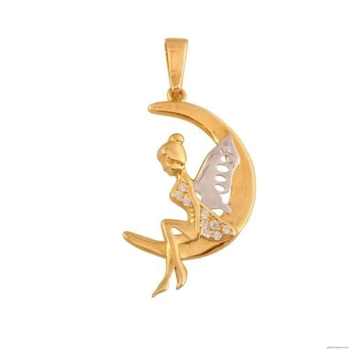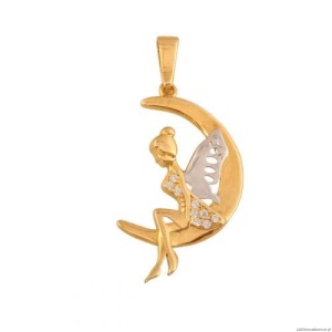 Zawieszka Elf na Księżycu. Połączenie białego i żółtego złota oraz cyrkonii.