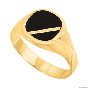 Sygnet z masą onyksową zdobiony złotą kreseczką.