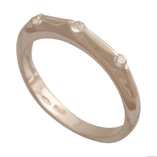 Pierścionek z białego złota o ciekawym kształcie z trzema cyrkoniami.Ciekawie komponują się trzy kolory razem.