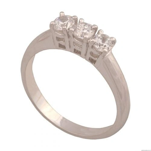 Pierścionek z białego złota z trzema cyrkoniami oprawionymi w łapki.