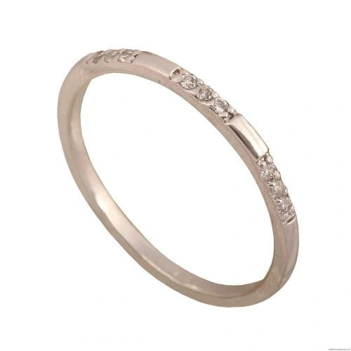 Pierścionek obrączka z białego złota z cyrkoniami.Można nosić pojedynczą lub w komplecie z różową lub żółtą.