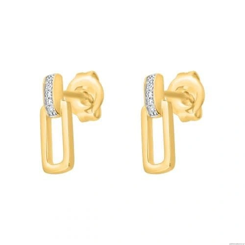 Kolczyki o fantazyjnym kształcie rameczek zdobione brylantami.