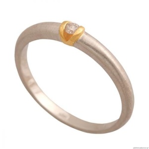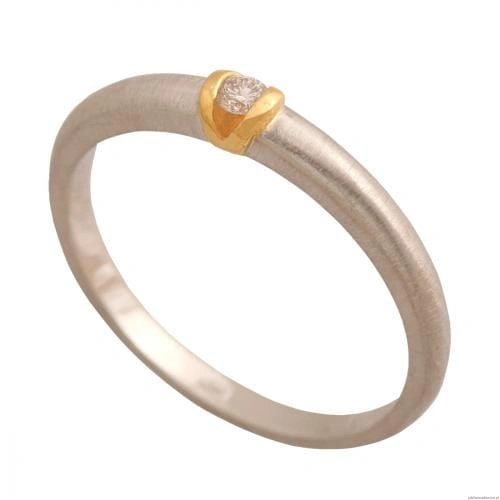 Pierścionek z białego,matowanego złota z brylancikiem w oprawie z żółtego złota.Pierścionek wyceniony na sztuki,waga podana orientacyjnie.