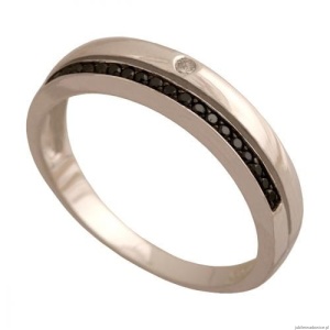 Pierścionek z białego złota w kształcie obrączki z jasnym brylantem i czarnymi brylantami