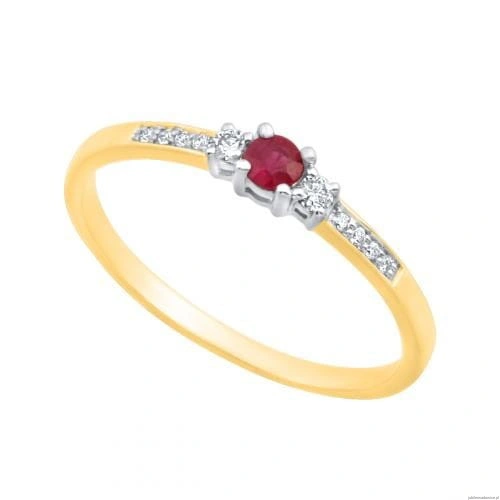Pierścionek z naturalnym rubinem i rzędami brylantów w górnej części obrączki.