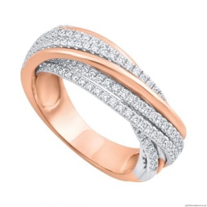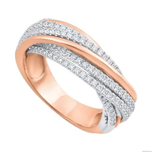 Finezyjny pierścionek w połączeniu różowego i białego złota z brylantami.