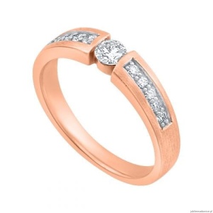Pierścionek z różowego, satynowego złota z brylantami.