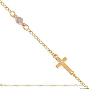 Bransoletka z krzyżykami i kółeczkami. Połączenie żółtego i białego złota. Możliwość regulacji długości do 17cm.
