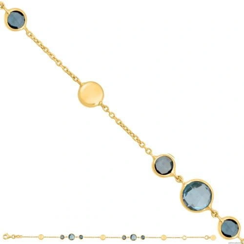 Ankrowa bransoletka zdobiona elementami z kamieniami w odcieniach błękitu, oraz złotymi centkami. Możliwość regulacji do 17cm..