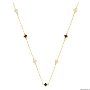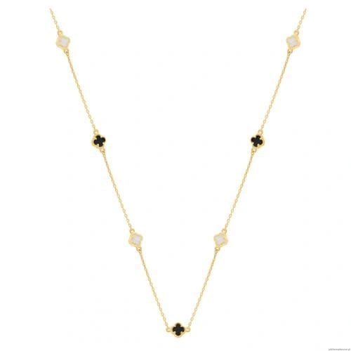 Bransoletka z koniczynkami z czarnymi kamieniami i białą emalią. Możliwość regulacji długości do 17cm.