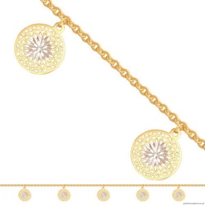 Bransoletka z doczepionymi przywieszkami w kształcie ażurowych kółeczek.