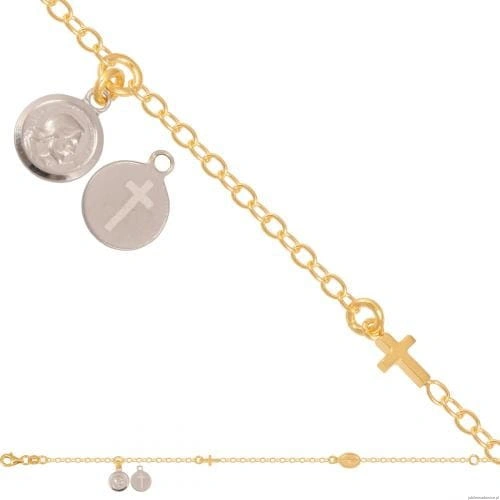 Bransoletka o ankrowym splocie z sakralnymi elementami.Połączenie żółtego i białego złota.Możliwość regulacji długości do 17,5cm.