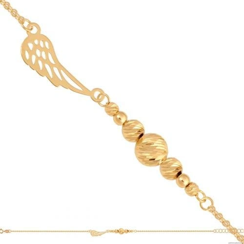 Bransoletka z dwóch łańcuszków o ankrowym splocie, ozdobionych błyszczącymi kuleczkami i skrzydełkiem. Możliwość regulacji do 17 cm.