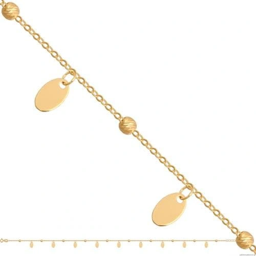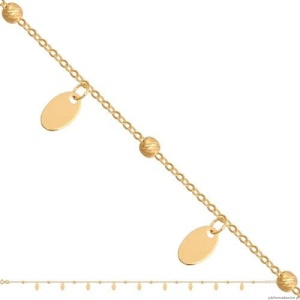 Ankrowa bransoletka, ozdobiona grawerowanymi kulkami i blaszkowymi zawieszkami. Możliwość regulacji do 17cm.