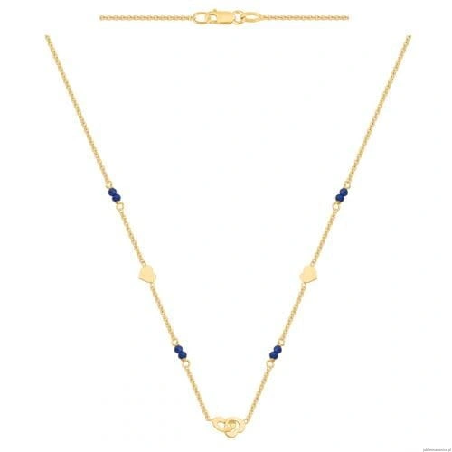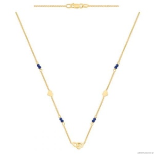 Ankrowa bransoletka zdobiona blaszkowymi serduszkami i granatowymi kamieniami.