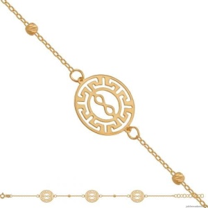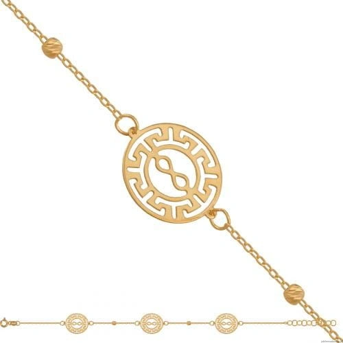 Ankrowa bransoletka z ażurkowymi blaszkami z nieskończonością i grecką drogą przeplatane grawerowanymi kuleczkami.