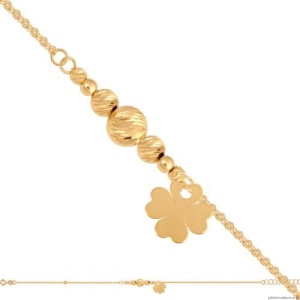 Bransoletka z dwóch łańcuszków o ankrowym splocie, ozdobionych błyszczącymi kuleczkami i koniczynką. Możliwość regulacji do 17 cm.