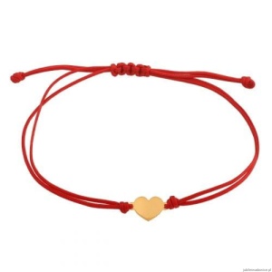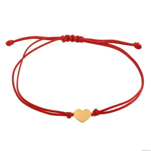 Nowoczesna bransoletka z płaskim, pełnym serduszkiem na sznureczku CZERWONYM.Podana gramatura dotyczy złota.