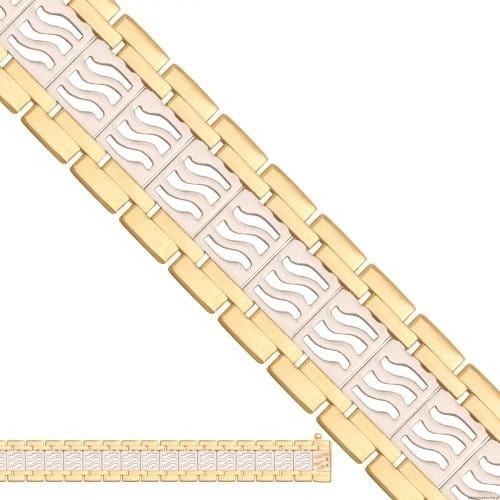Składana bransoletka z wycinanych elementów.Połączenie żółtego i białego złota.