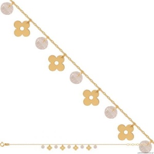 Efektowna bransoleta z ruchomych, blaszkowych elementów, zdobionych błyszczącymi nacięciami.