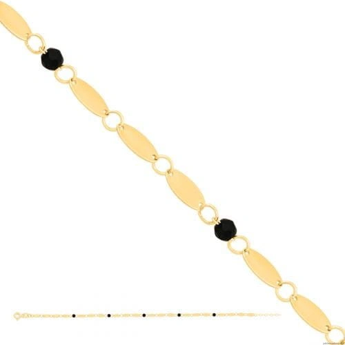 Bransoletka składająca sie z elementów. Ozdobne czarne kamyczki dodają szczególnego blasku bransoletce na każdej ręce. Możliwość regulacji do 19cm.