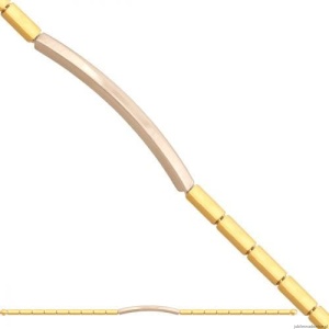 Bransoletka z prostokątnych,przestrzennych elementów z przestrzenną blaszką.Połączenie żółtego i białego złota.